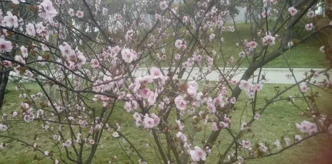 前面散落一地的花儿提醒了我,原来梅花的花期已近尾声了,杏花也正在飘落,也许一场春雨就会换来零落满地。而海棠和桃花,却才只是点点红妆,正幻想着自己明天的绚烂呢。