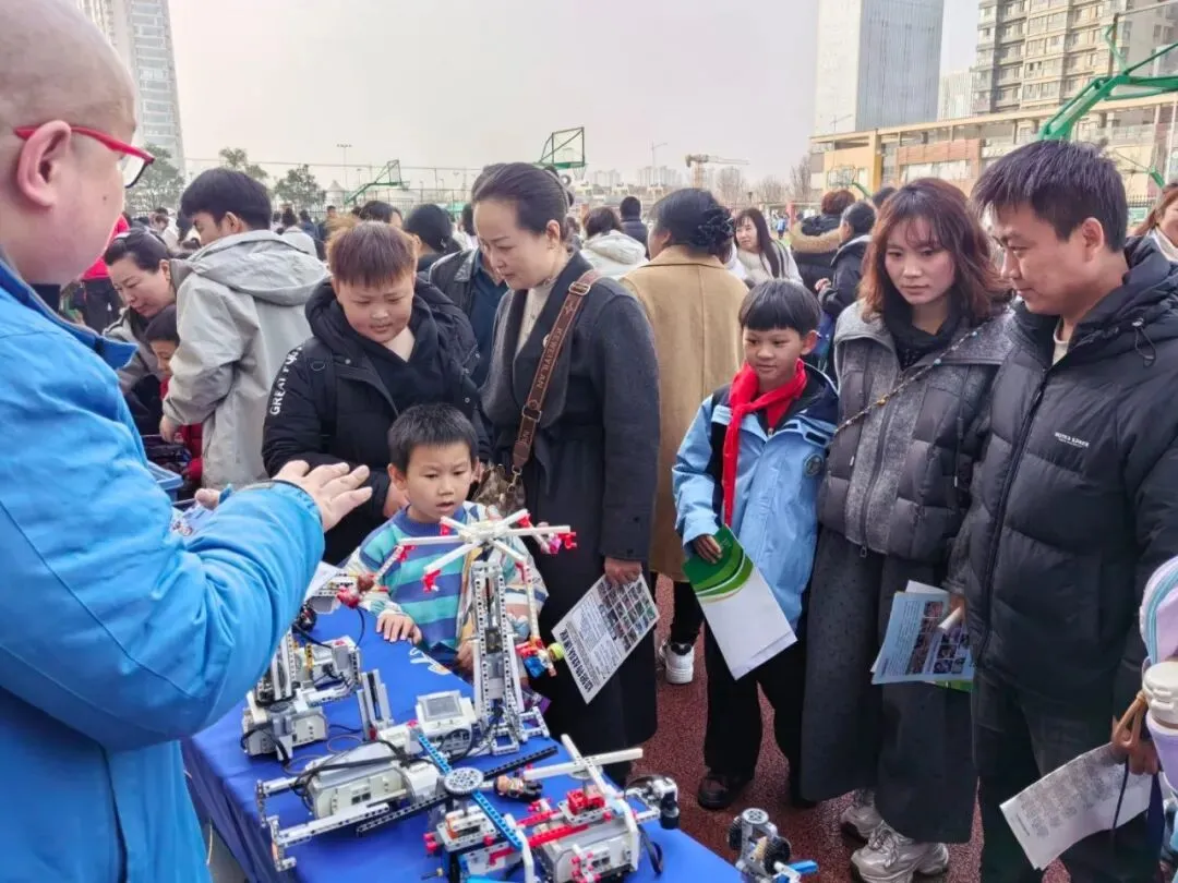 家长会结束后,家长们有序陪同孩子走进操场与各功能教室,开启沉浸式课程体验游园。在操场,足球、乒乓球球、花式跳绳等体育课程活力满满,剪纸、创意美术等艺术课程陶冶情操,人工智能、Scratch编程等科技课程激发探索欲;爵士舞、竹笛、古筝、射击等特色课程让孩子们动手实践、乐在其中。家长们驻足聆听、细致了解,孩子们则在体验中释放天性、发现兴趣,整个活动现场秩序井然、氛围热烈,充分展现了家校携手共育的良好氛围。