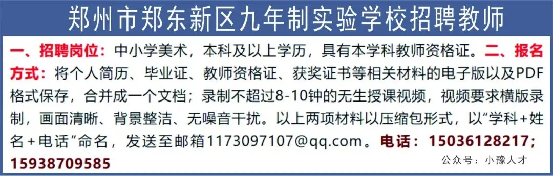>郑州市郑东新区九年制实验学校招聘教师