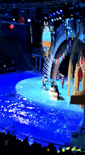 住这里的酒店比较方便,自然是酒店🏨送门票的模式,郑州之眼摩天轮🎡和游乐设施在海星岛的正中间,过山车🎢和大摆锤冬天下雨没开,海盗船不敢坐😂,场馆在海星岛的周围。 出来后路遇NPC,石头剪刀布较量一番赢了20仙贝✌🏻,也能换礼品🎁~ 向前是上升,向后是下降,你这向前向后一顿操作是几个意思…屁都颠出来了吧😂 北极熊🐻❄️还能走两步,旁边的冰原狼🐺趴着一动不动~ 旁边的欢乐剧场每天都有几场表演~海狮转圈顶球⚽️是常规项目了~ 下来之后去旁边的银河战舰,就是个大秋千,咚咚说不刺激😂~ 路边有各种表演,这个招驸马的小姐姐被六名驸马疯抢🥰~ 今天的欢乐剧场有海象奥斯卡的精彩亮相🤩,仰卧起坐还挺标准~ 吹萨克斯🎷有模有样~被揭穿了假吹还知道害羞捂眼睛😂 旁边的4D剧场是一个进入游戏世界冒险的4D动画片,咚咚超喜欢🤩~