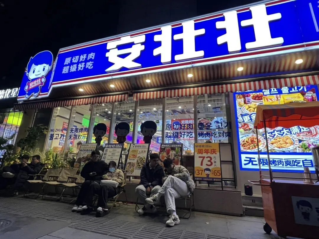 回来后,又去安壮壮吃烤肉。满店是时尚年轻的男女小主,外面还在排队。邻座那几个,人高马大,不是一般的会吃。我们进去时他们就已经吃得欢,一片生菜裹一块厚实的烤肉,我们离开时他们还没有走的意思,依旧是一片生菜裹一块厚实的烤肉,没有一点浪费……确实是"无限烤肉,无限欢乐",饕餮呐。