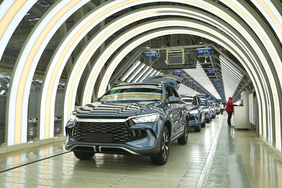 在比亚迪郑州基地,每50秒就有一辆新能源汽车下线。