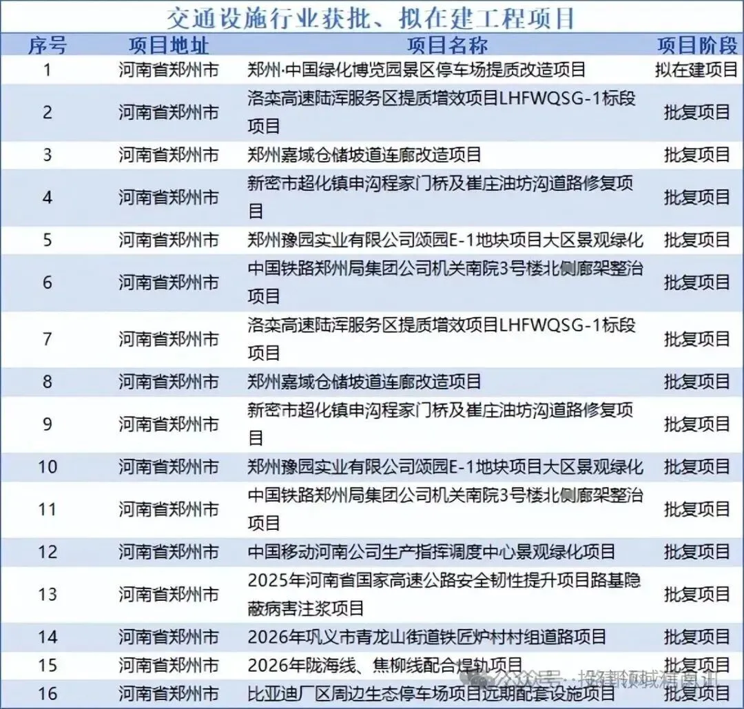 注:后期具体项目动态变化,依官方公示数据为准。