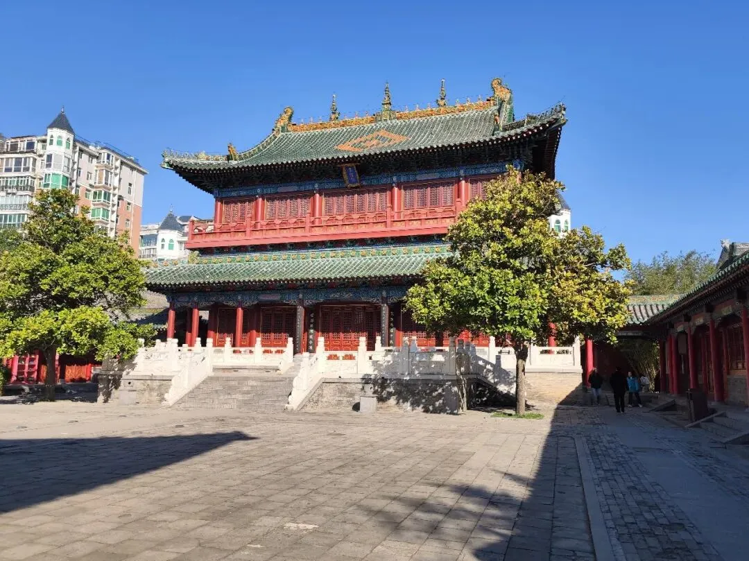 郑州文庙始建于东汉明帝永平年间,占地约5万平方米,中轴线上共有五进院落,殿宇廊亭二百余间,历经千年风雨,早已湮灭。元代曾仿原貌重建,明清时也曾做大规模修造,清光绪二年遭遇火灾,化为灰烬,重建后其规模已非昔比。解放后,仅存清代建筑大成殿,被列为省级文保单位。如今看到的建筑大多为2004至2006年间重建,气势恢宏。