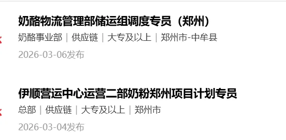 伊顺营运中心运营二部奶粉郑州项目计划专员