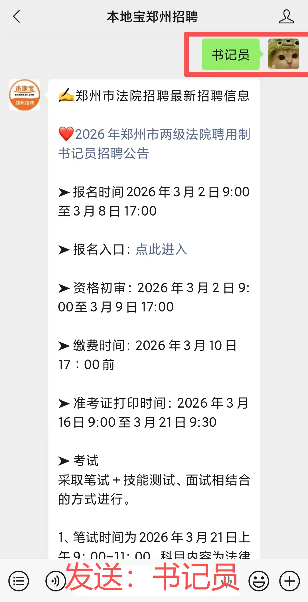 温馨提醒:扫描下方二维码关注【本地宝郑州招聘】微信公众号并在对话框发送【书记员】即可获取报名入口、详细招聘公告等信息