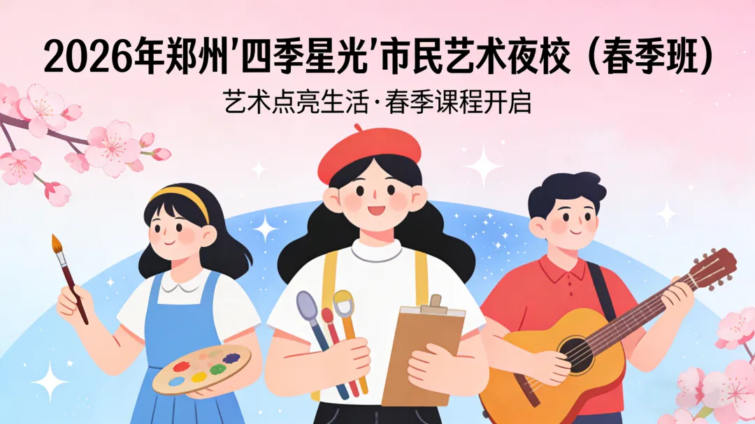 诚邀广大市民朋友报名参与2026 年郑州 “四季星光” 市民艺术夜校(春季班),共赴艺术之约,乐享美育生活!