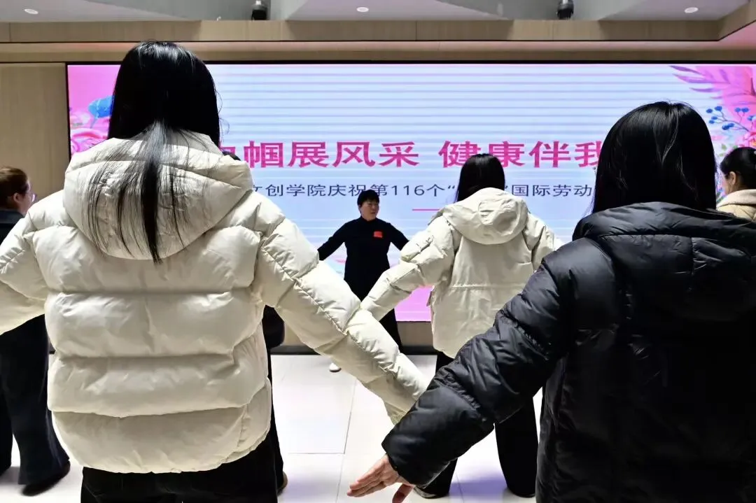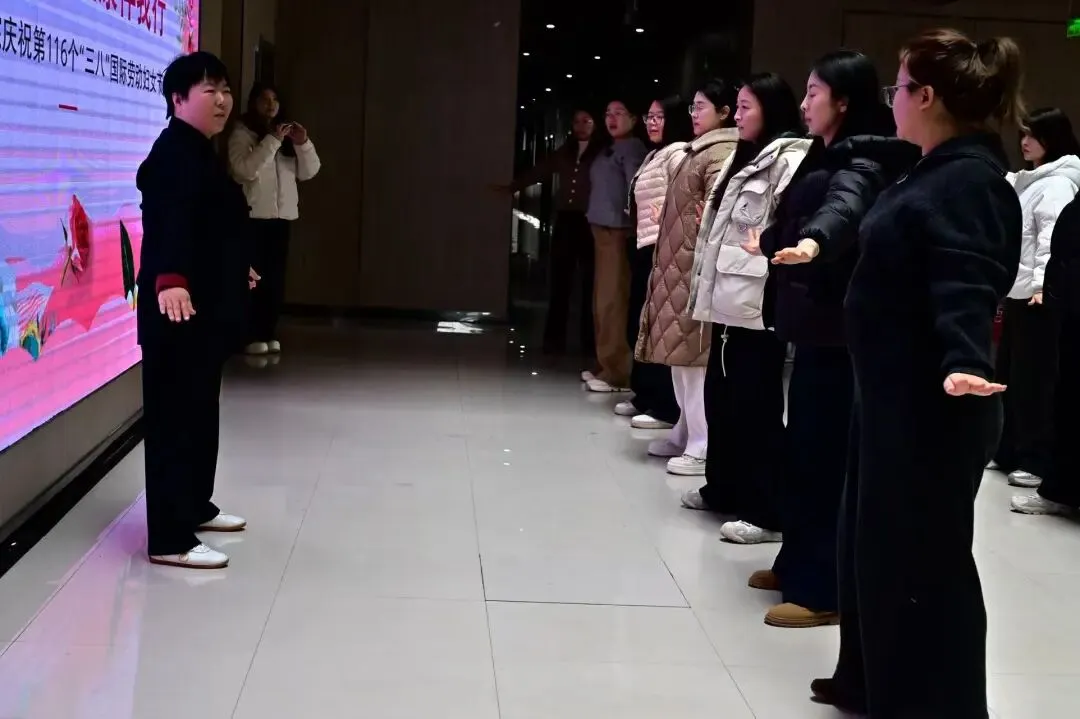3月6日,为庆祝第116个“三八”国际劳动妇女节,数字文创学院分工会在7号楼B座大厅举办了“巾帼展风采·健康伴我行”主题活动,旨在通过传统养生功法的学习,倡导“健康工作,快乐生活”的理念,帮助女教职工缓解压力、强健体魄,进一步提升职业幸福感与生活品质。