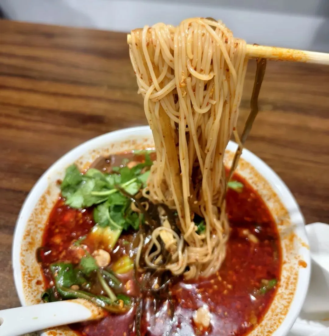 这家店在汝河路上,离探十里很近,叫“彭姐米线”,也是开了好多年,味道比较重口,底料里有豆瓣酱,喜欢吃麻辣口味的可以去尝尝,米线比较劲道,和阿康小吃的口味有点像,他家的白吉馍也挺好吃的!