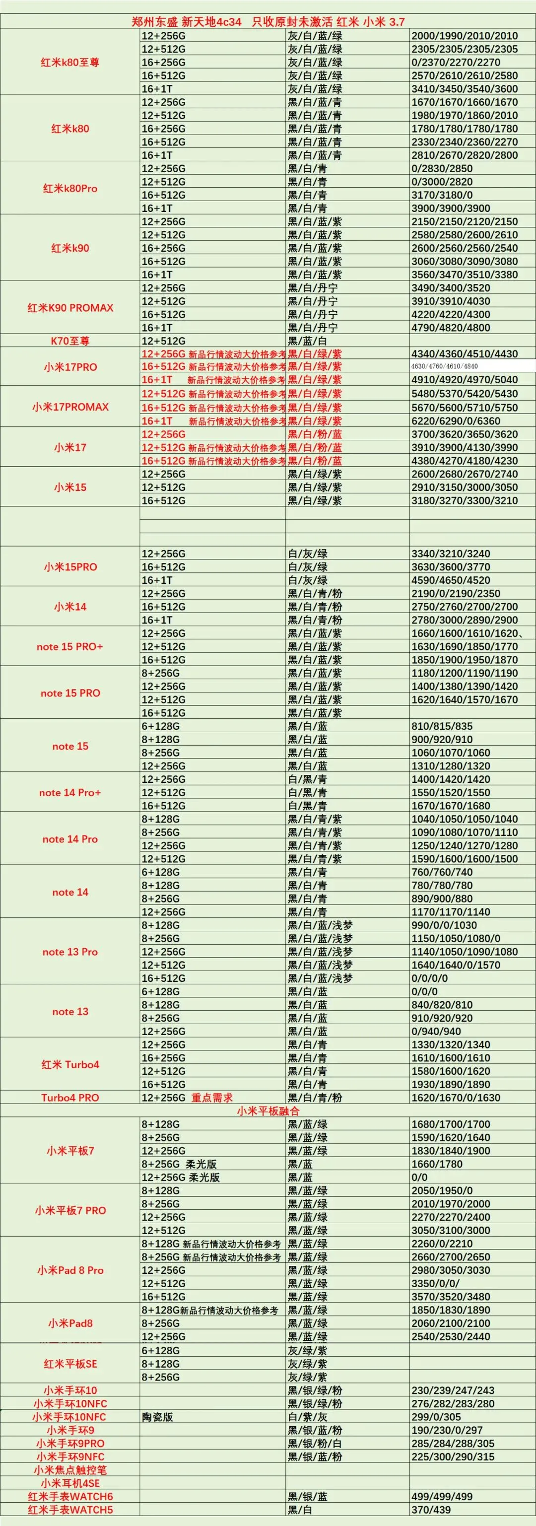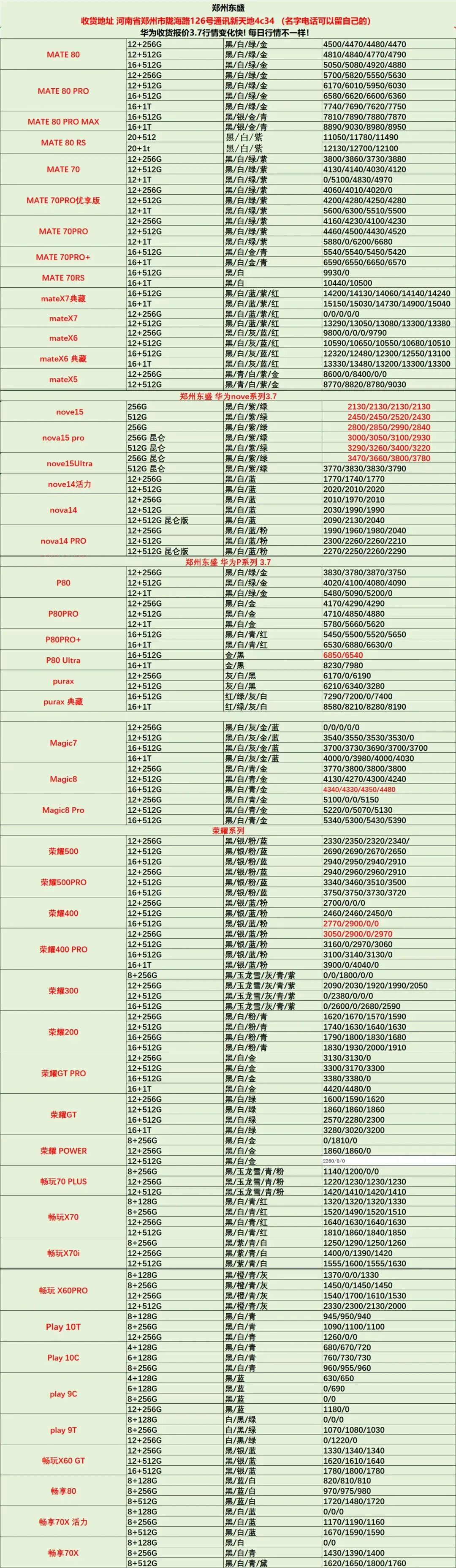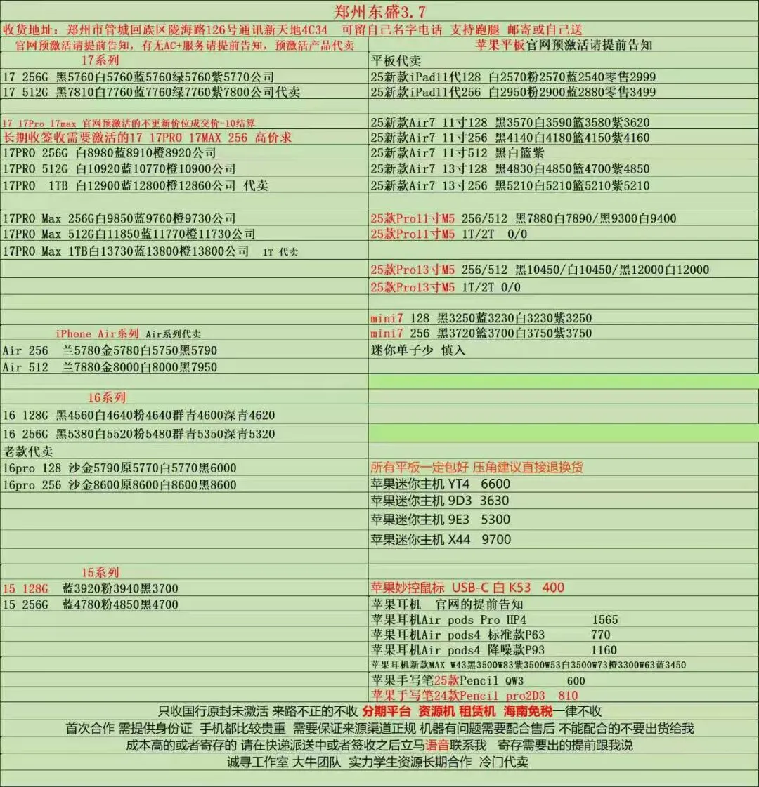 >郑州通讯新天地东盛3.7行情