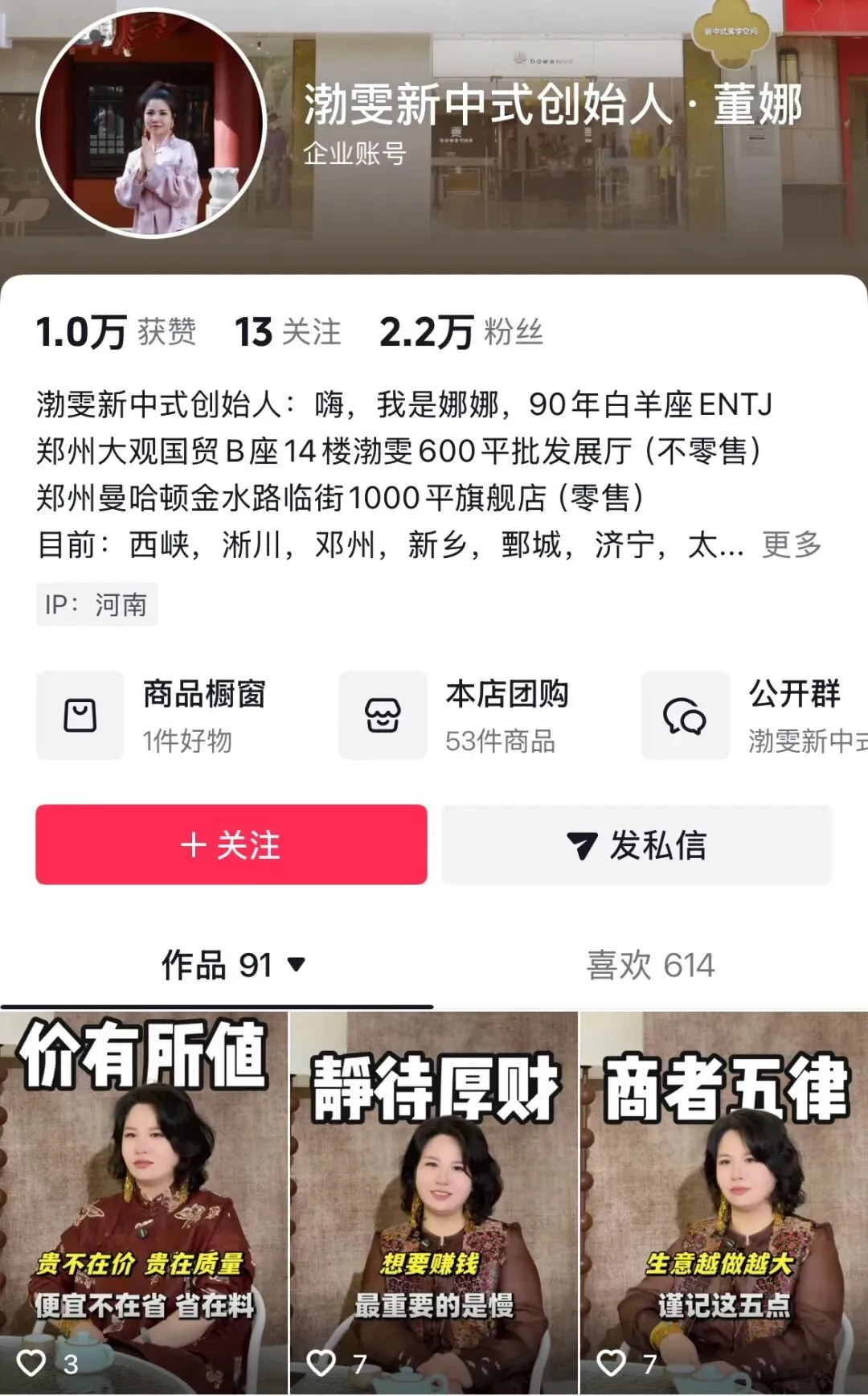 董娜在社交媒体平台也开设了个人账号,分享自己的经验和创业故事,目前有2.2万粉丝。