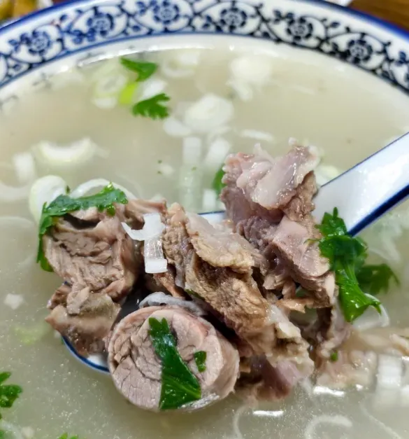 一定要尝尝本地的羊肉汤。不是那种清汤寡水的,而是熬得奶白醇厚。肉片切得薄,在滚汤里一烫就熟,撒上一把翠绿的葱花和香菜。喝一口,热气顺着喉咙下去,额角微微冒汗,那股子鲜味是霸道的,直接冲进鼻腔。