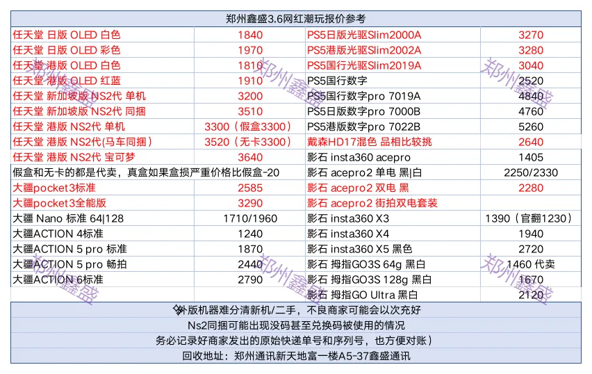 每日手机回收参考报价单,可以收藏下,每天晚上都会更新手机数码,游戏机,电脑、大疆回收报价,报价参考有时可能会有上下小浮动差异,具体以到货行情为准,欢迎转发