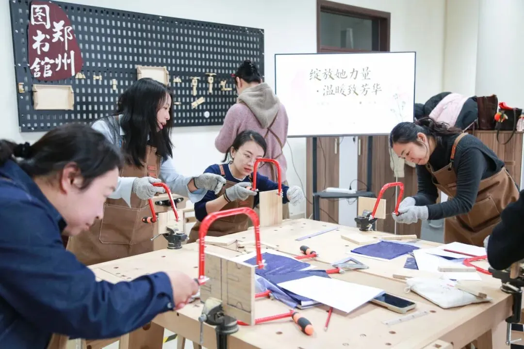 三月的图书馆,不只是阅读的空间,更是一处充满温度的生活美学场域。3月6日,郑州图书馆在营造生活式空间举办了两场“手中的非遗”妇女节专题木工手作活动。