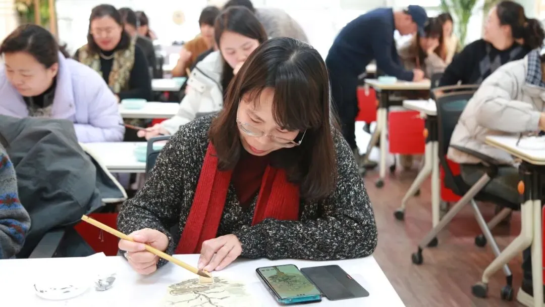 在老师的耐心示范下,即便是零基础的读者,也能在一笔一墨之间慢慢勾勒出玉兰的清雅风姿。一把小小的扇面,在笔墨流转中逐渐成形,既是一件实用雅物,也是一段独特的非遗记忆。在静谧的创作时光里,参与者暂别日常忙碌,在传统艺术的浸润中感受内心的从容与丰盈。