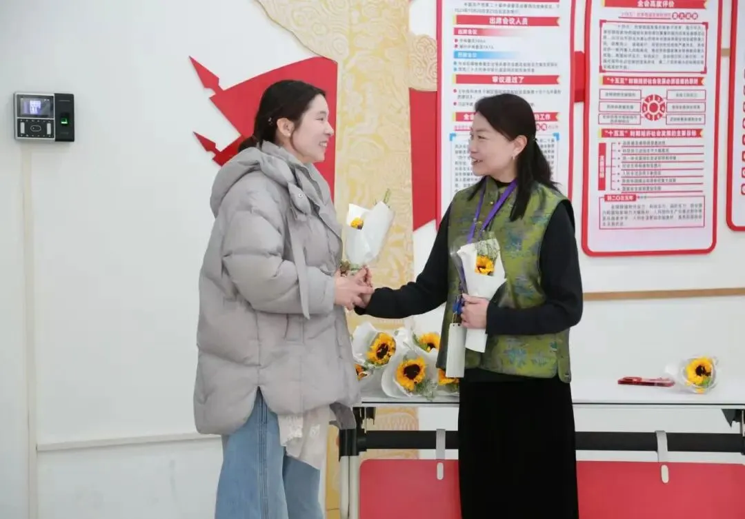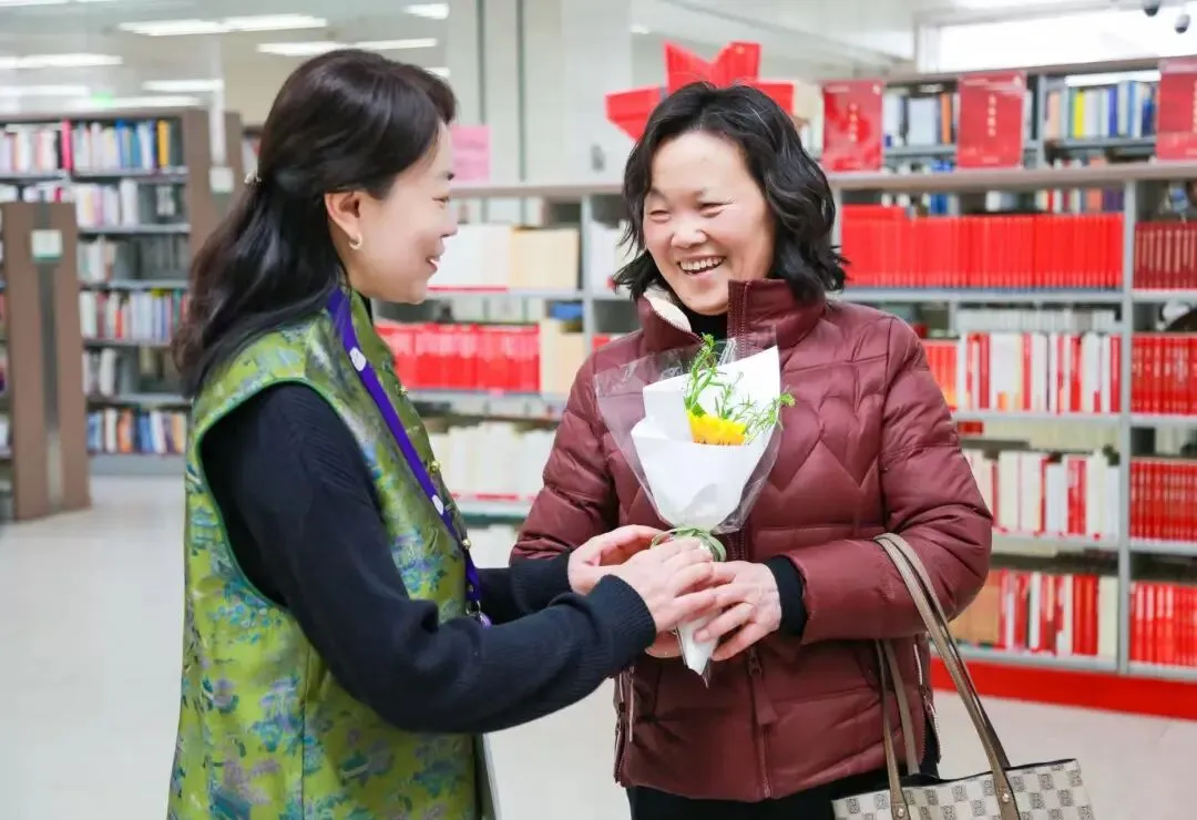 一束花,一份心意,一缕书香,一份祝福。馆领导班子为每一位女职工送上向日葵,寓意 “心有阳光,生活晴朗”;同时也为到馆阅读的女性读者准备了温馨鲜花,以花为礼,共度美好书香时刻。