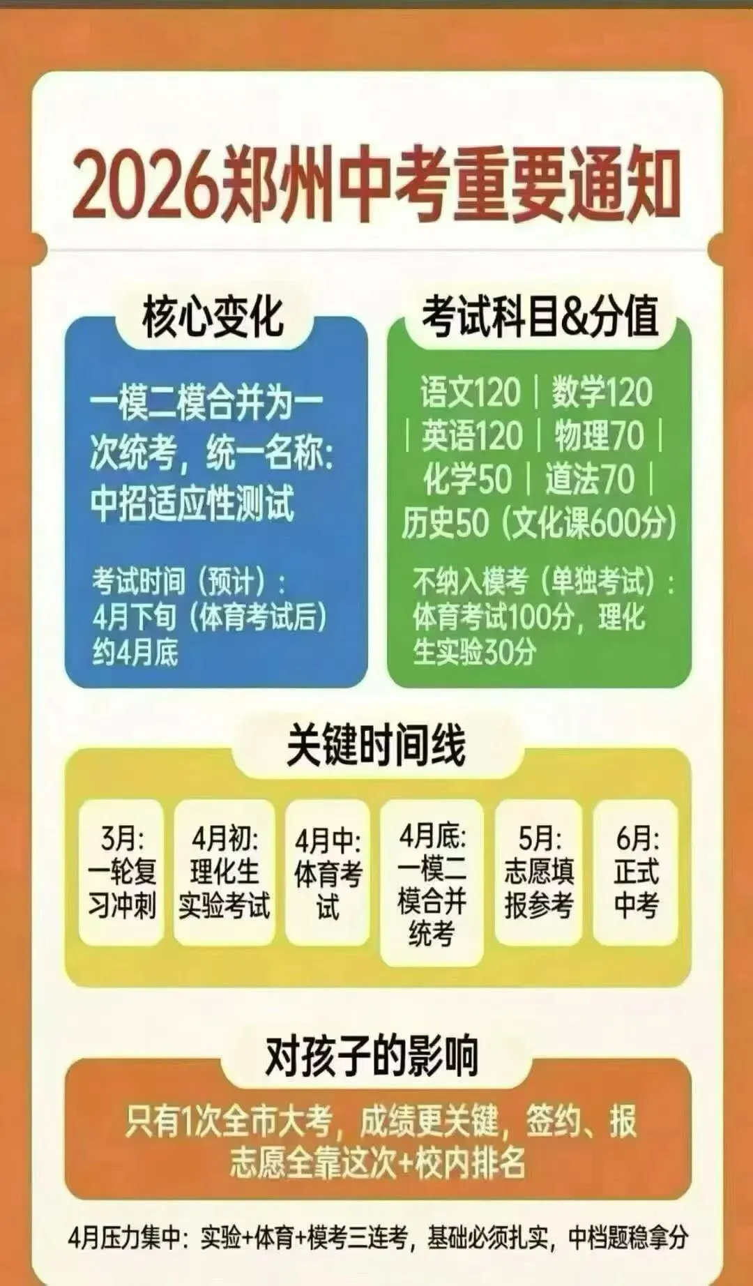 今年,情况突变。据有关消息,一模二模要取消合并为“中招适应性测试”,测试时间定为四月底。四月,今年的中考生要进行理化生实验测试,体育测试,再加上这个测试,今年的四月,将成为郑州历史上中考生最忙碌的四月。