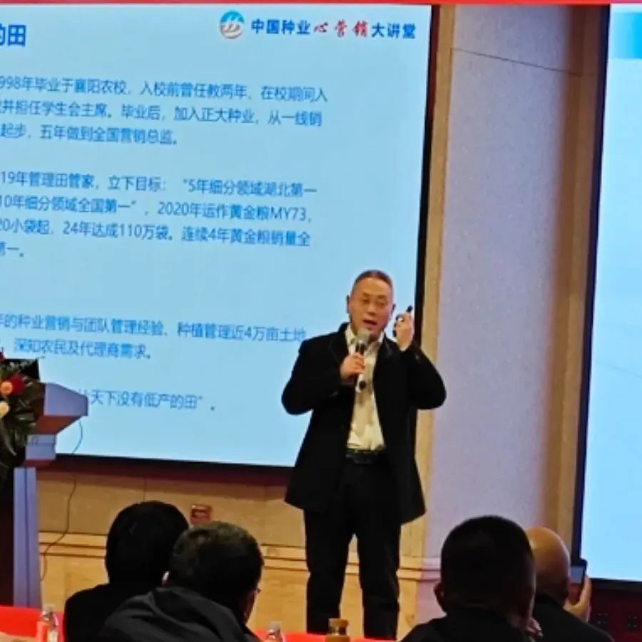 随后,本次会议迎来了干货满满的分享环节。首先,李治安讲师围绕“心营销”理念展开深度分享,他结合当下种业市场的发展趋势,提出营销的核心本质是“以消费者为中心”,强调只有深入洞察消费者的内心需求,贴合种植户的实际诉求,才能打破营销壁垒,实现产品与市场的精准对接,为经销商伙伴们提供了全新的营销思路与实操方向,让在场伙伴们深受启发。