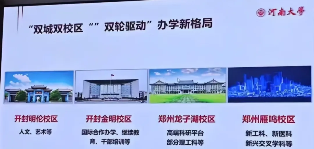 河大官网明确规划,未来要形成“双城双校区”“双轮驱动”的办学新格局,不是单靠郑州校区,而是两个校区各有定位、互相补充。