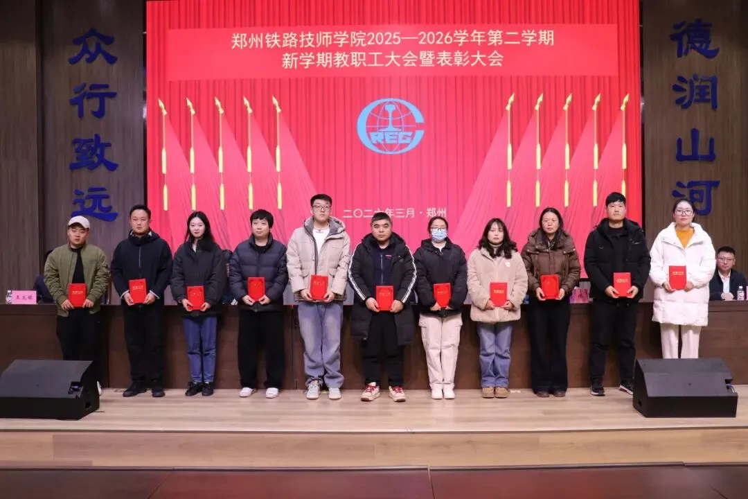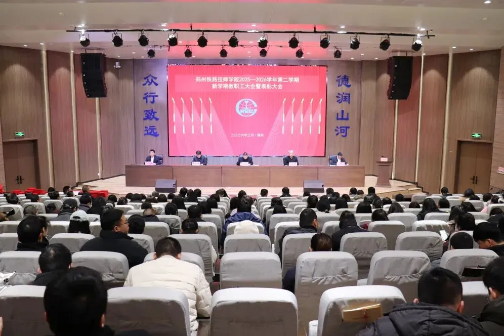 3月7日下午,郑州铁路技师学院2025-2026学年第二学期教职工大会隆重召开。学院党委书记苏永东、院长吴伟等领导班子成员及全体教职工参会。会议以“回顾过往、表彰先进、部署新篇、凝聚共识”为核心,为新学期各项工作锚定方向、吹响奋进号角。