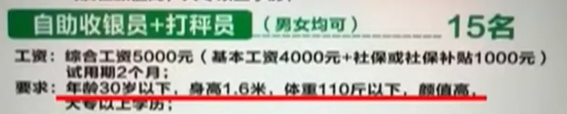 郑州超市的事件并非孤例。近年来,服务行业的招聘“潜规则”与“明规则”中,类似对年龄、外貌、体型的隐形要求层出不穷。