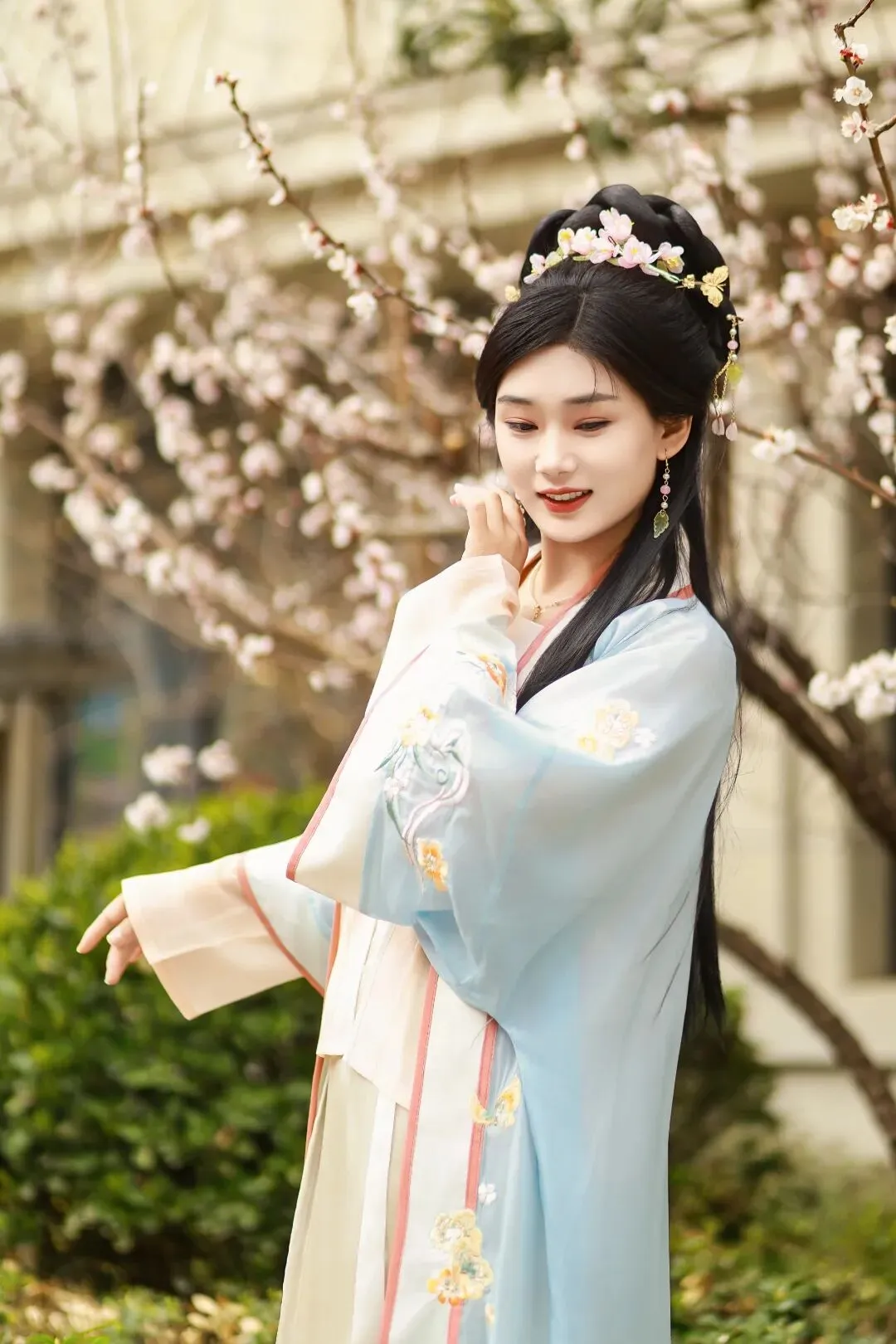 有人换上素雅旗袍,有人轻披一袭轻纱,发丝随意挽起,神态自在舒展。平日里站在讲台上的她们,此刻带着独属于自己的气质,或温婉、或灵动、或清雅、或大气,一转身、一抬眼,皆是风情。春风拂过衣袖,阳光落在肩头,每一位老师,都在这一刻,活出了最舒服、最本真的模样。