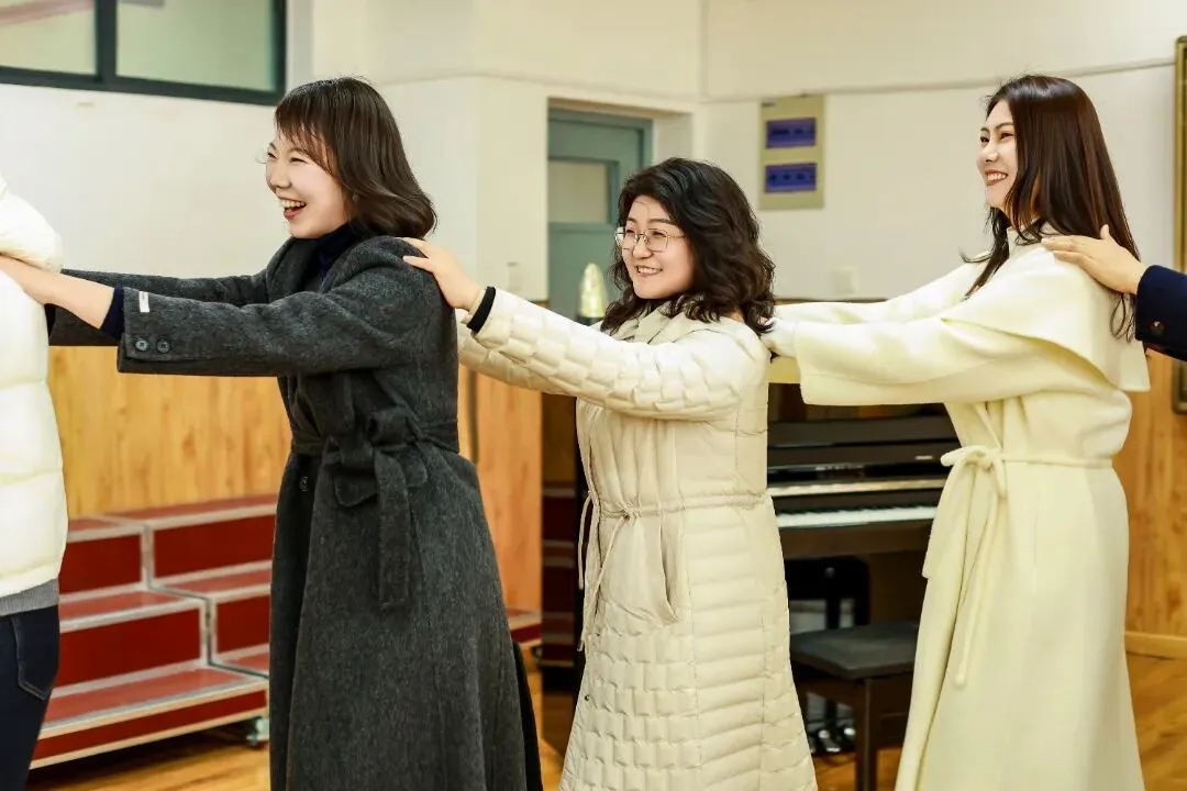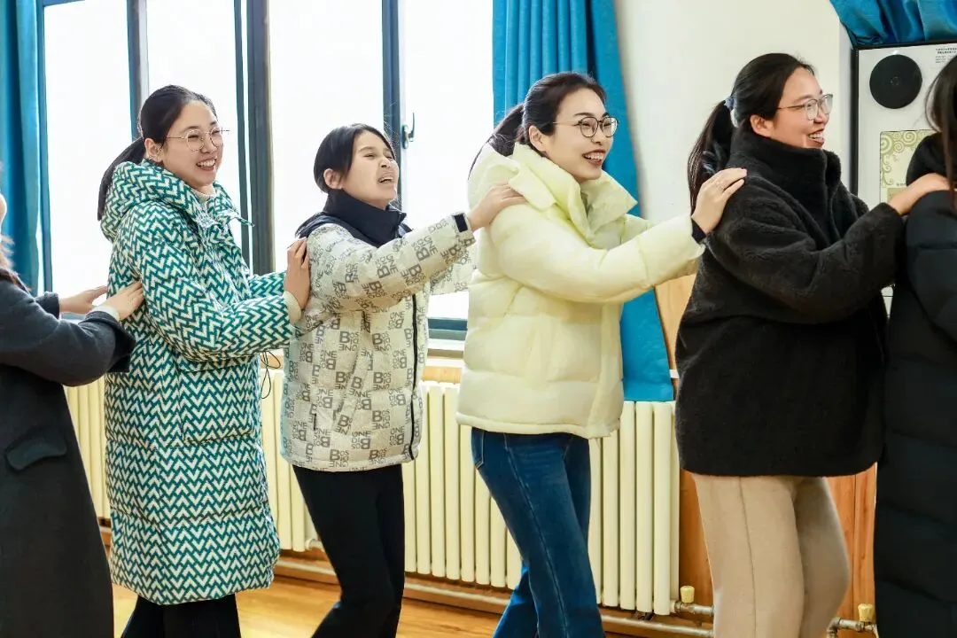 “天天我等着你,等着你捉泥鳅”,熟悉的歌声一响起,老师们围成一圈,像孩子一般笑着、闹着、互动着。那一刻,没有教案,没有作业,没有身份,只有纯粹的快乐与放松。她们笑得开怀,笑得真切,仿佛回到了无忧无虑的年少时光。