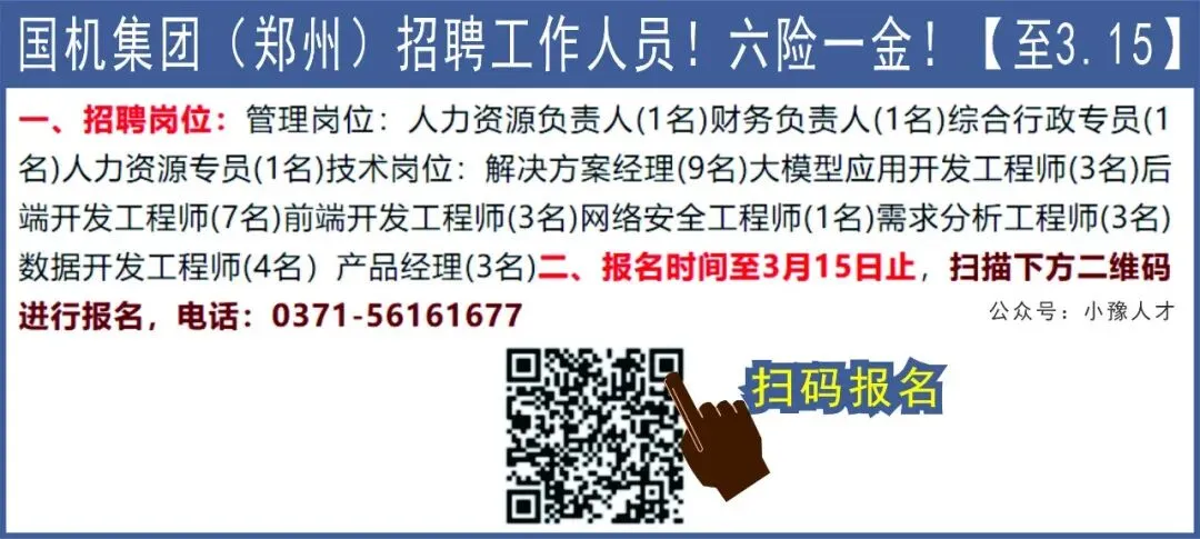 >国机集团(郑州)招聘工作人员!六险一金!【至3.15】