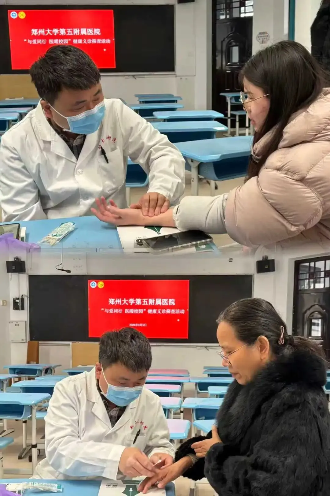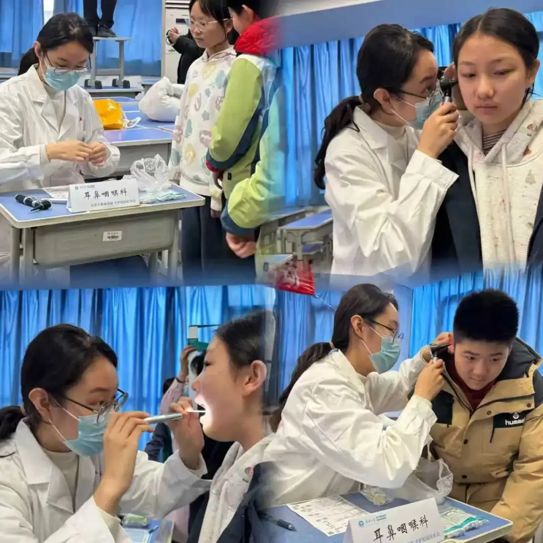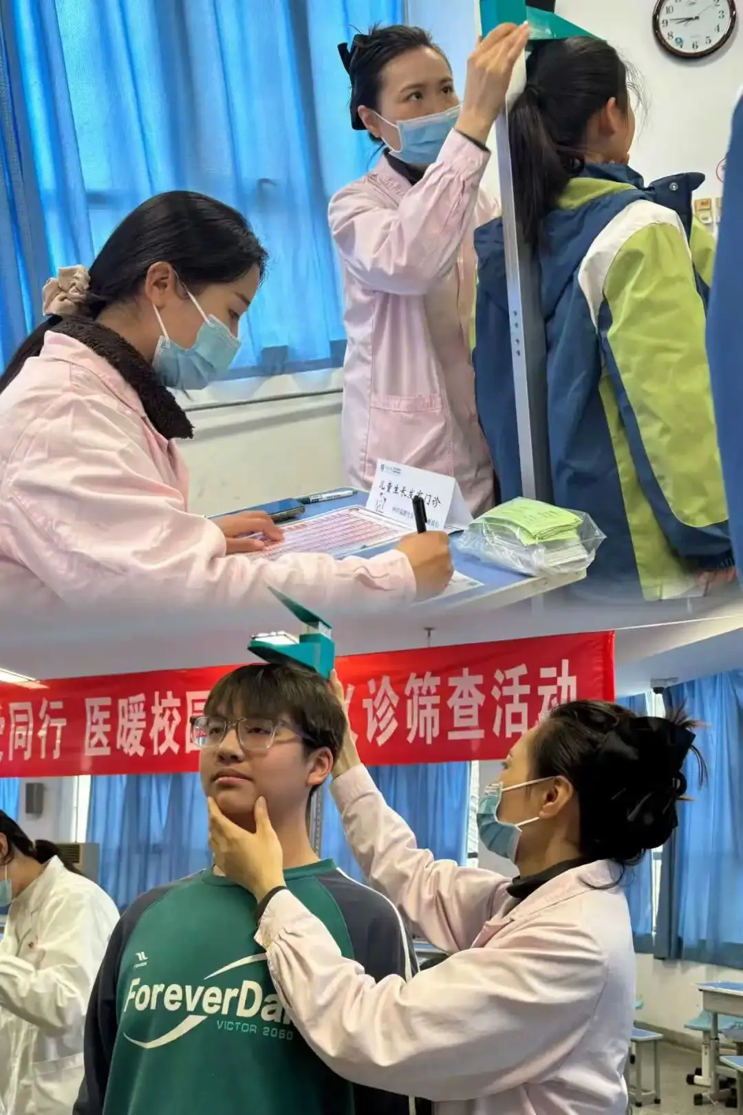 活动现场设置多个专科义诊台,来自医院的医护团队为师生提供细致诊疗服务:儿童生长发育科的医护人员为同学们精准测量身高、体重,计算生长发育指标,结合个体情况给出科学的饮食、运动及作息建议,助力孩子们健康长高、茁壮成长。