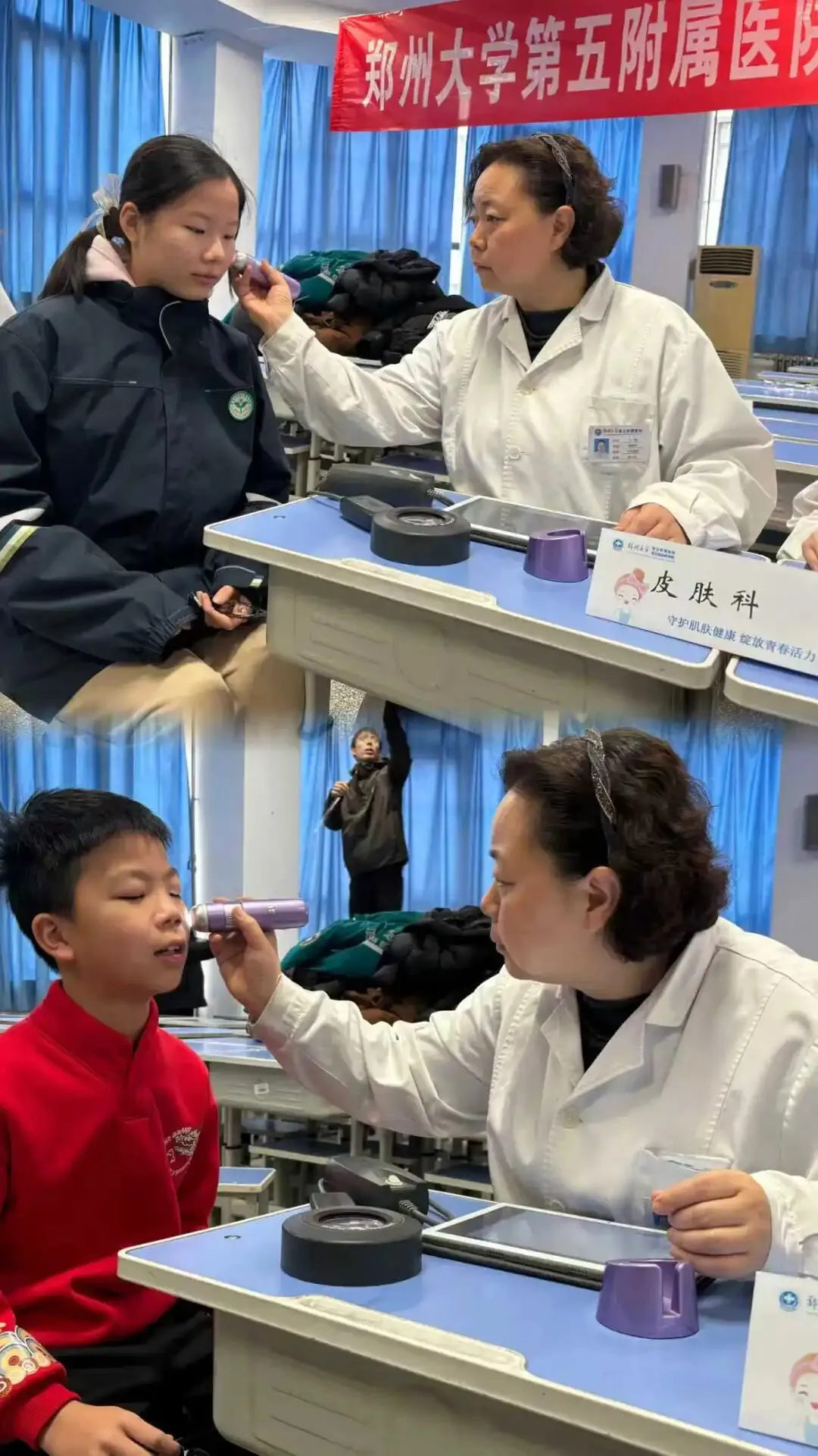 皮肤科医生借助专业皮肤检测仪器,为学生筛查皮肤问题,科普日常护肤与过敏防护知识,解答学生关于皮肤护理的疑问。