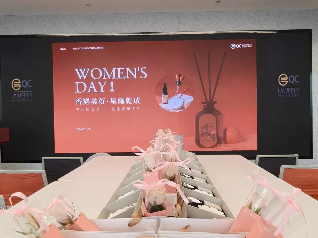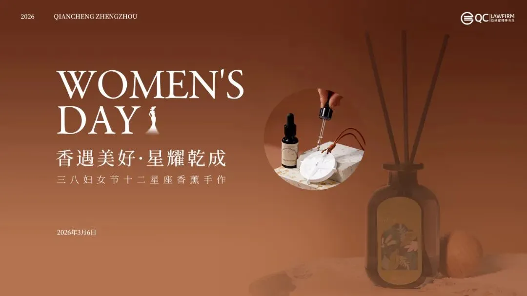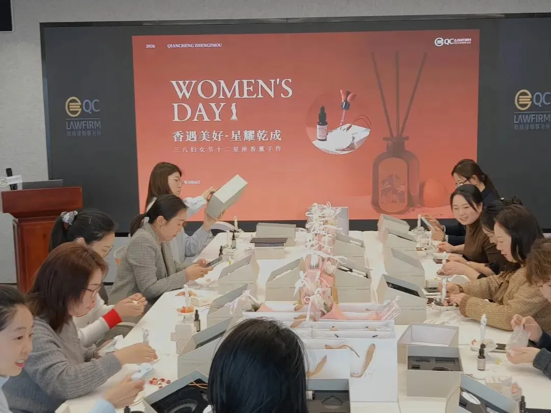 春风启芳华,香韵伴星辰。在第 116 个 “三八” 国际劳动妇女节来临之际,北京乾成(郑州)律师事务所于 2026 年 3 月 6 日下午,温情举办 【香遇美好 星耀乾成】 十二星座能量守护晶石香薰手作主题活动 。律所全体女律师、女员工暂别案卷与庭审,以香气为引、以晶石为佑、以手作为乐,共度治愈又有仪式感的专属节日,致敬每一位专业、温柔、闪耀的 “她力量”。