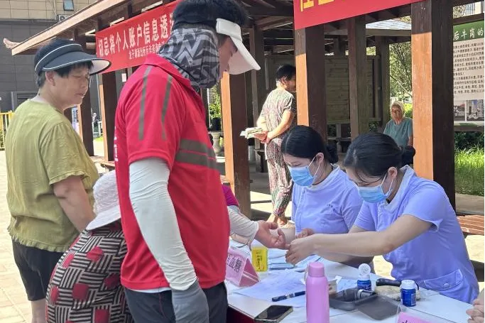 工作人员登记居民健康信息、
