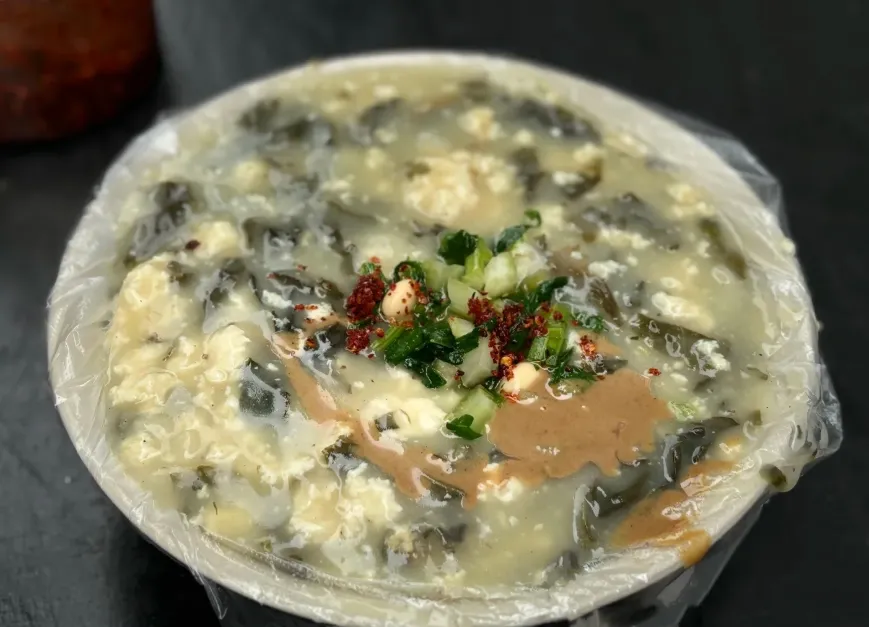必试的还有“芝麻叶豆腐脑”。和别处的豆腐脑不同,这里加了腌制过的芝麻叶,黑乎乎的虽然卖相一般,但那种经过晾晒和发酵后的特殊咸香,配上嫩滑的豆腐,吃一口,你就懂了什么叫“土生土长”的滋味。