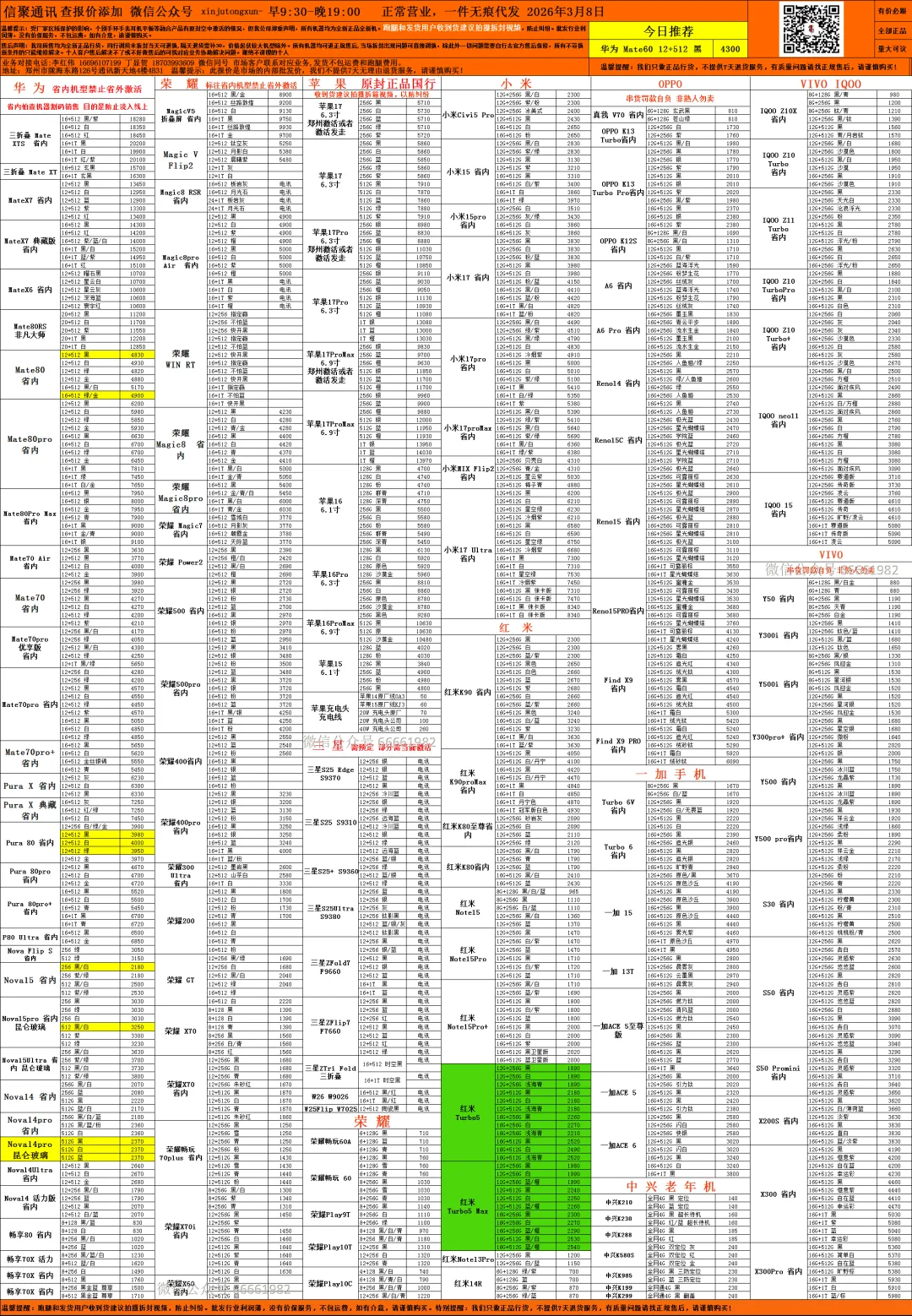 郑州明和手机报价单 3.8 已更新