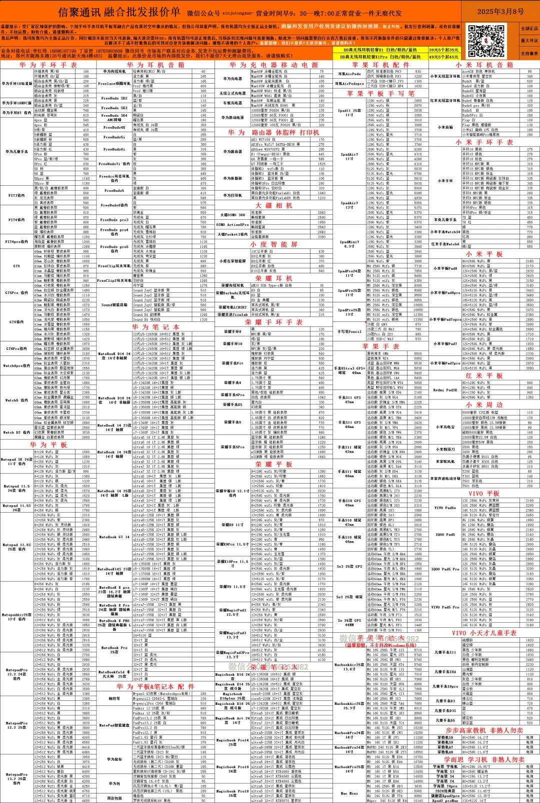 手机批发报价单!