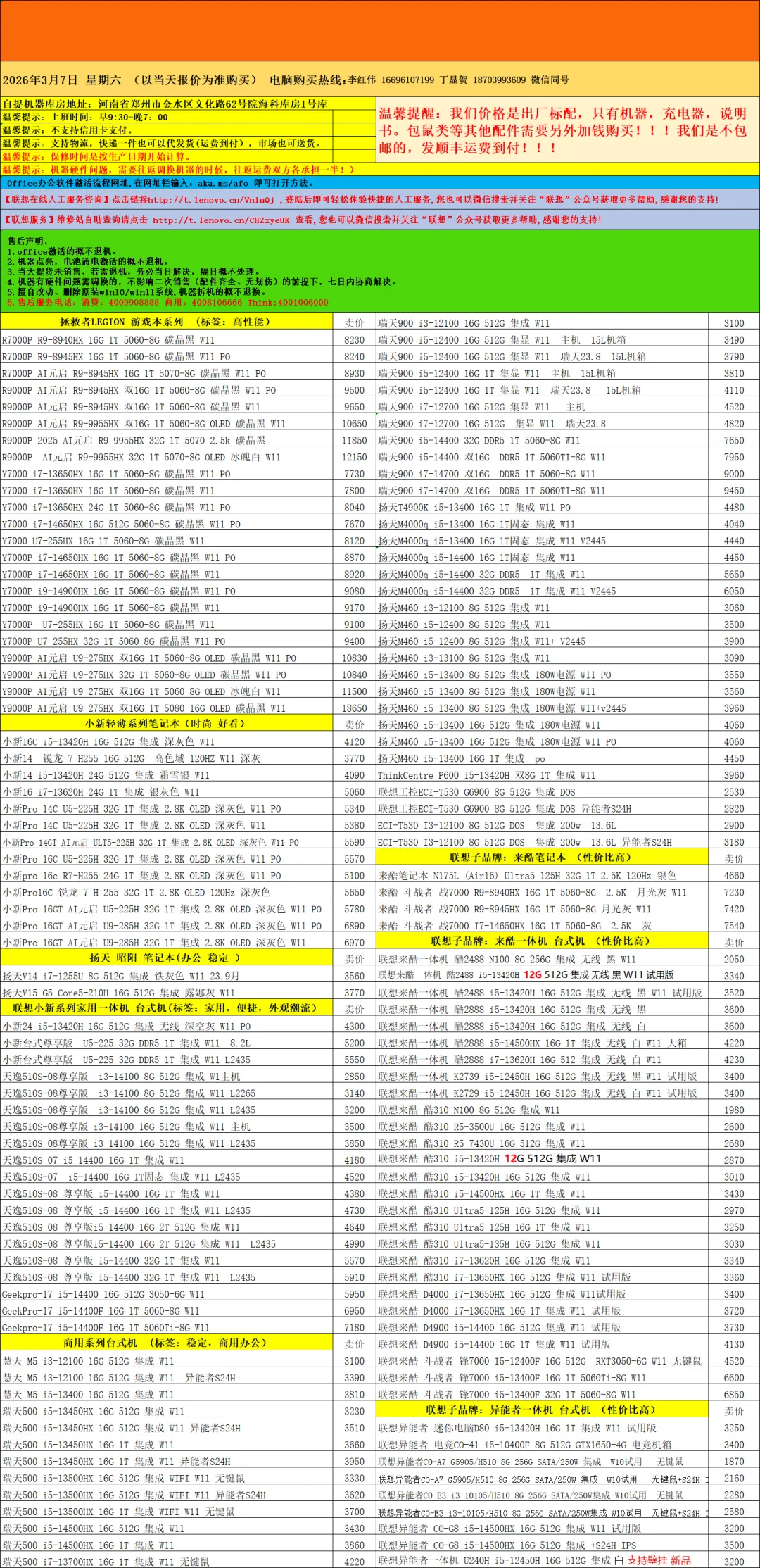 联想电脑批发报价单!