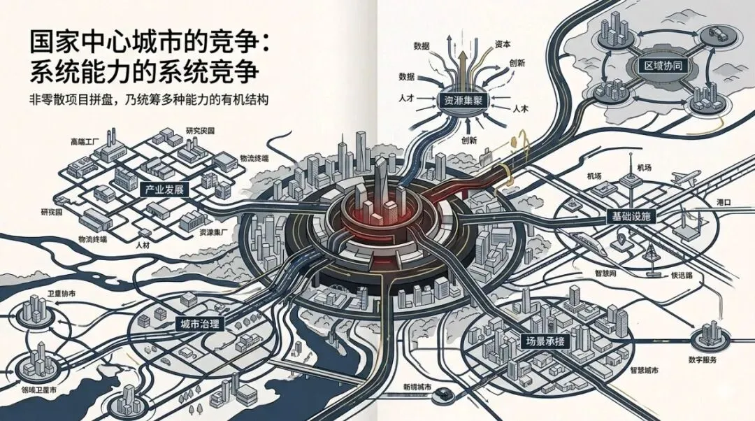 因为国家中心城市不是项目拼盘,不是多建几个园区、多落几个企业、多上几个平台就够了。它更像是一套系统能力的竞争。