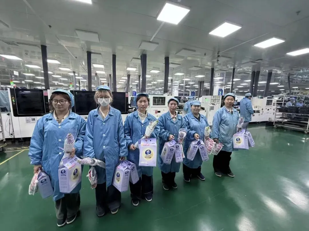 仪式感从不缺席!同时我们为每一位在岗的女神都准备了一支鲜花,小小的花朵,承载着最真挚的祝福。