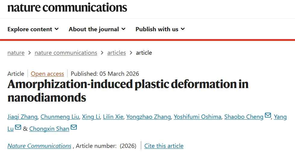 金刚石由sp³共价碳键组成,以其卓越的硬度、热导率和宽禁带等特性而闻名,然而其本征脆性严重限制了变形和加工能力。金刚石长期以来被认为是不可变形的最硬天然材料,这主要归因于其强方向性的C-C sp³共价键。尽管金刚石在力学、光电子、生物医学和光子学等领域具有广泛应用前景,但高脆性和几乎不可变形的特性严重制约了其潜在应用。