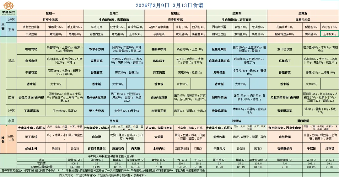 郑州市第五十七中学东校区•营养食谱【下周食谱预告】3月9日—3月13日