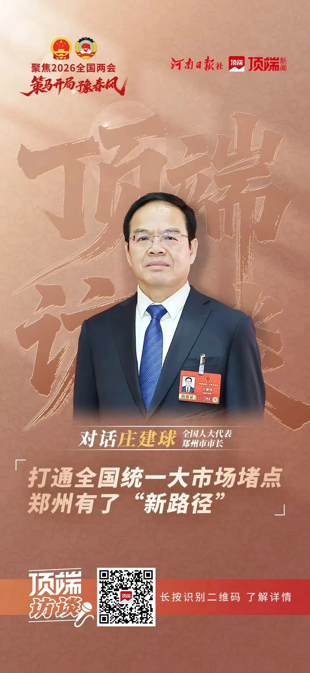 2026年,郑州还有哪些新打算?在纵深推进融入服务全国统一大市场、提振消费等方面,如何破题?全国两会期间,顶端新闻记者专访全国人大代表、郑州市市长庄建球。