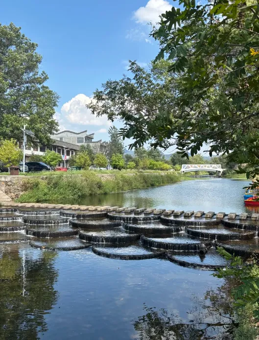 拍照建议:别在大中午拍。等到下午四五点,去河边的石桥上。夕阳把水面染成橘红色,有老牛在岸边吃草,这时候逆光拍一张,不用修图,就是一幅油画。
