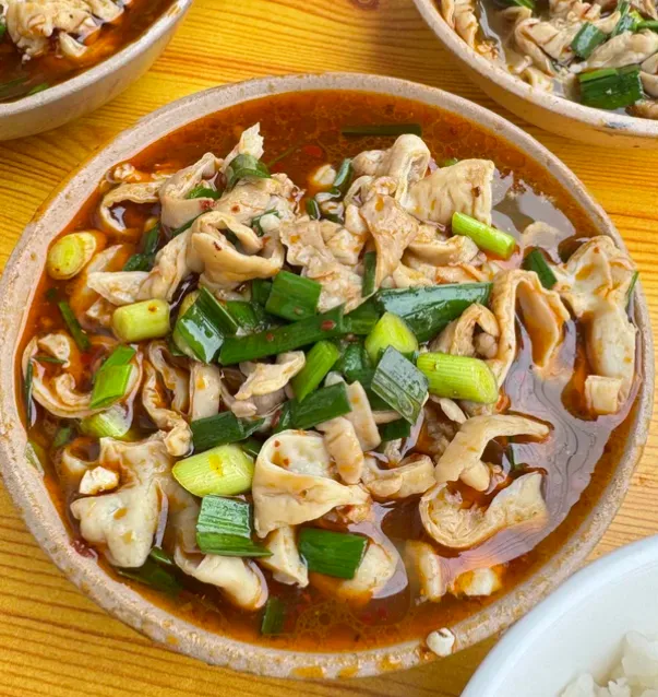 一定要尝尝罗山大肠汤。别被名字吓到,它不是那种油腻的荤腥,而是处理得极其干净的醇厚。找一家门口停满电动车的苍蝇馆子,坐下。端上来的砂锅还在“咕嘟”冒泡,红油亮亮的,大肠切得段落分明,咬下去“咯吱”一声,软糯里带着点韧劲,里面的油脂瞬间在舌尖化开,烫得你只想大口扒拉米饭。配上一碟腌得酸爽的小菜,额头微微冒汗,昨夜的疲惫就全散了。