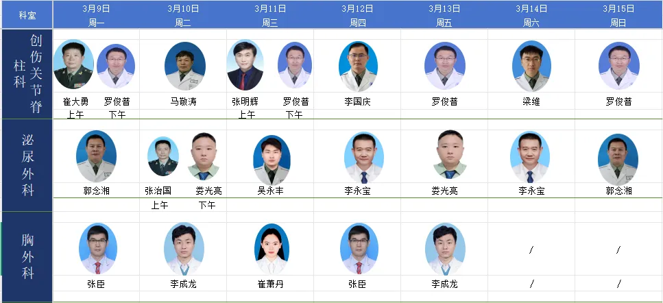 当前位置:首页>郑州>郑州四六〇医院3.9--3.15门诊医师坐诊表