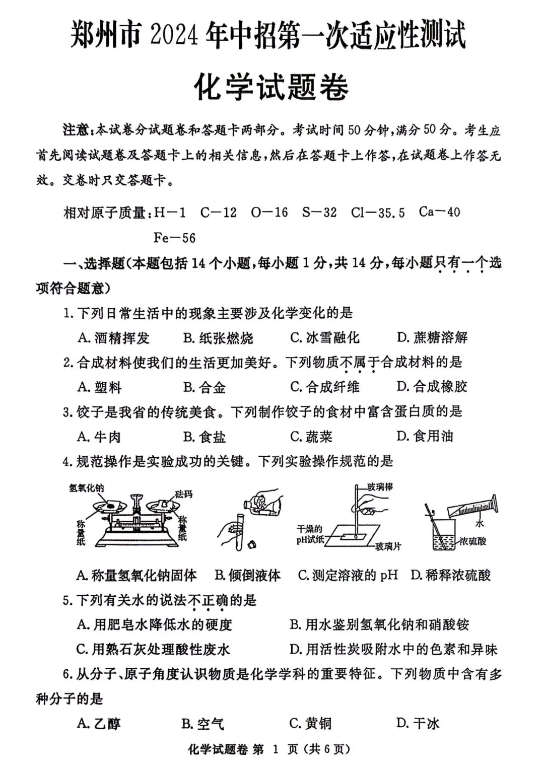 2024年郑州一模化学.pdf