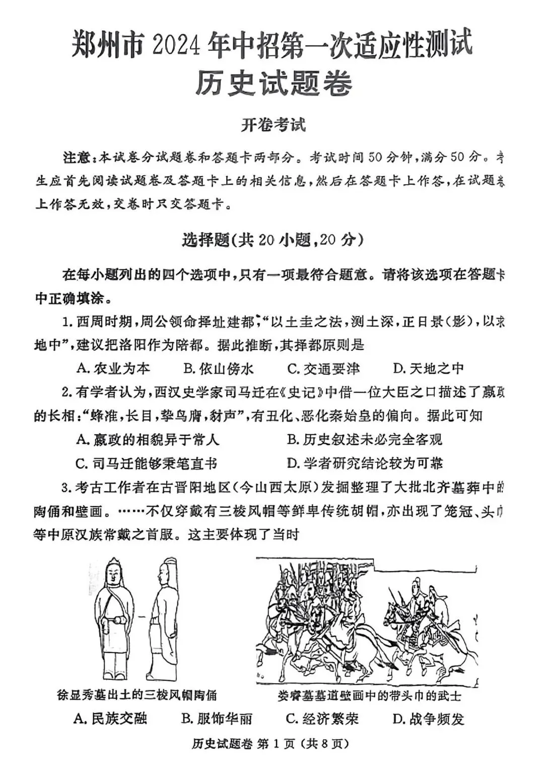 2024年郑州一模历史.pdf