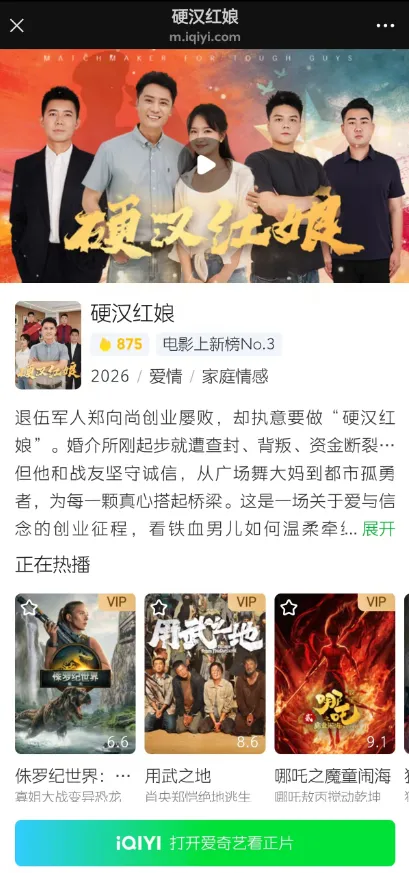 🎬 观看方式:爱奇艺搜索【硬汉红娘】,独家上线!目前已经冲上新榜NO.3