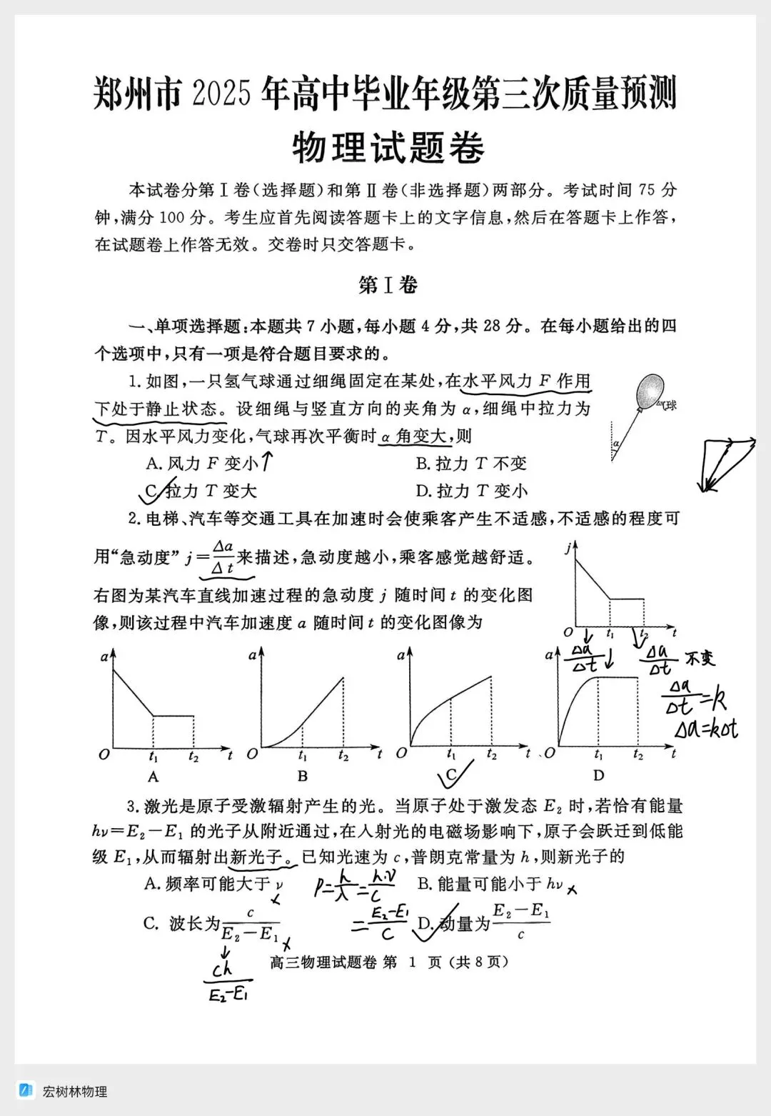 再刷郑州2025届高三物理三模,整体难度适中、题型有新意,非常贴合高考考向🔥