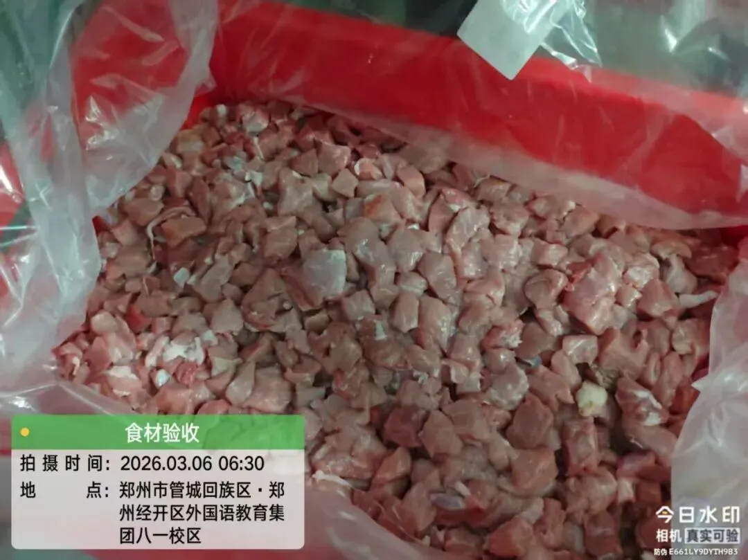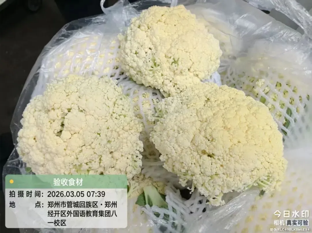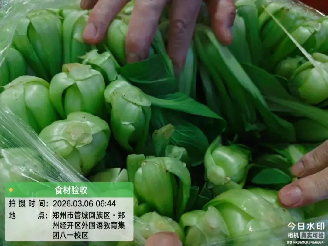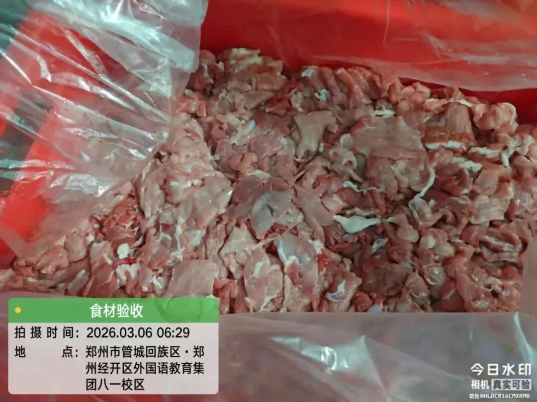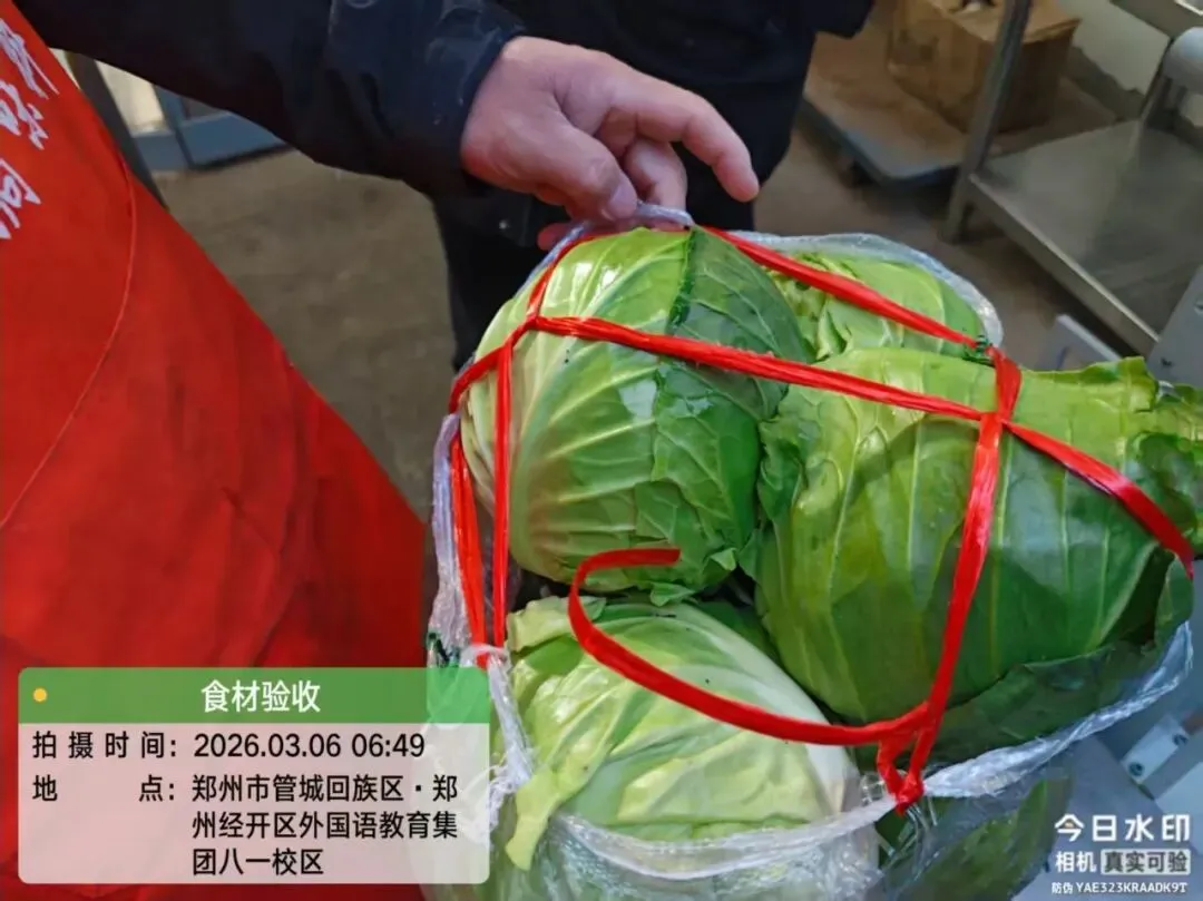 严把食品安全关,食材验收就是第一道大门,也是最重要的一道关卡。为了让师生吃的健康、吃的安心,学校领导及总务处工作人员秉持着严谨负责的态度,每日早上7:00就开始忙碌,对食材供应商送来的蔬菜、鲜肉、鸡蛋、面油、调料等食材进行验收。