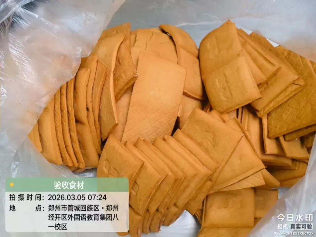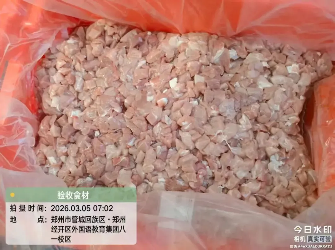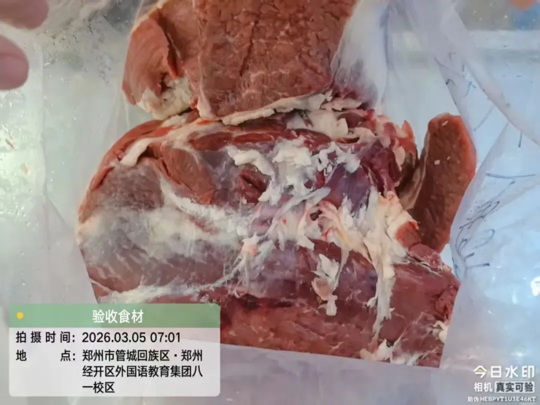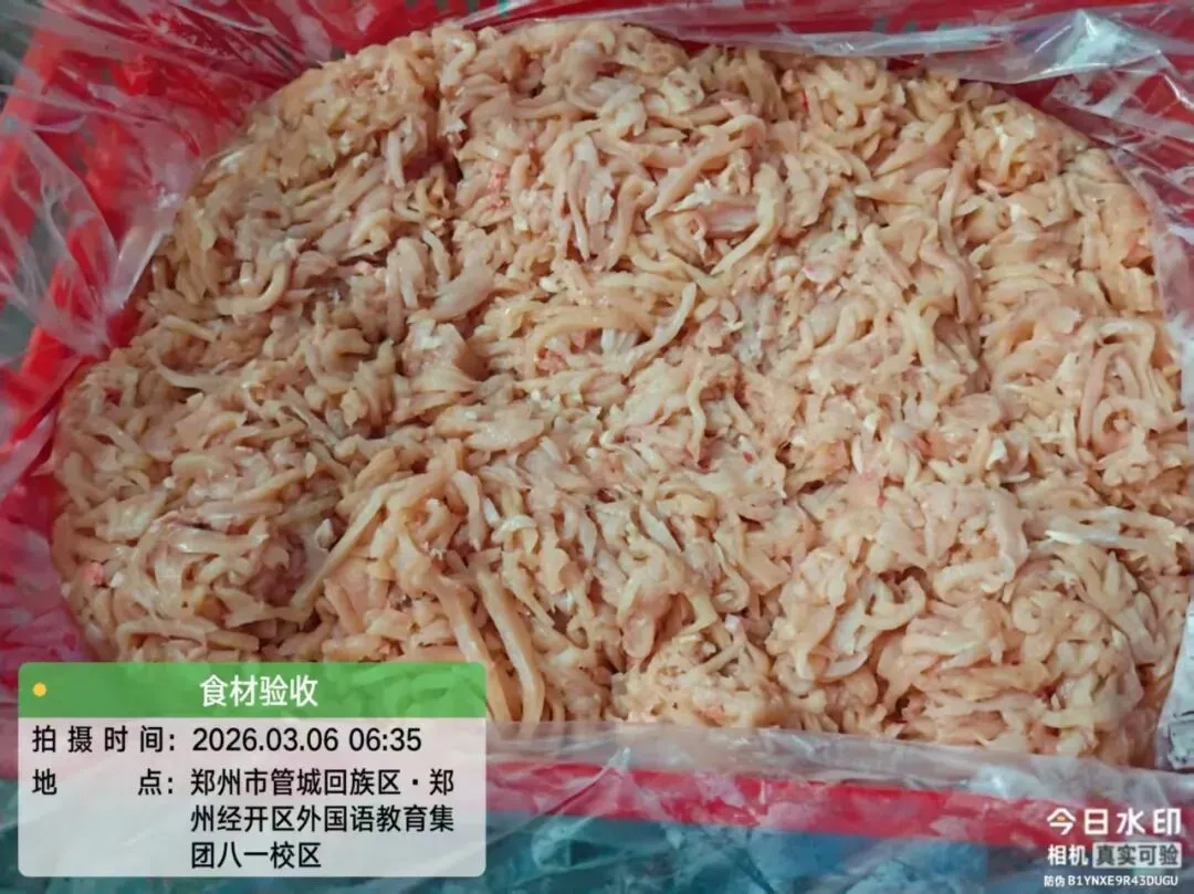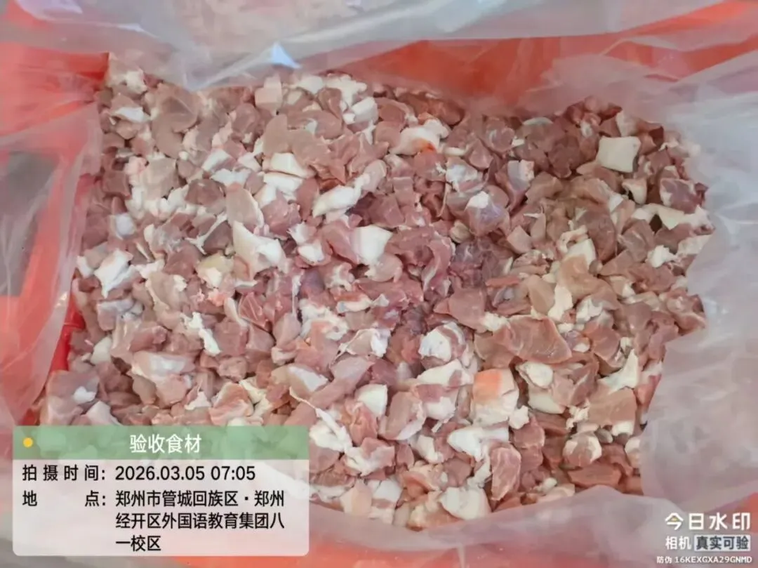 严把食品安全关,食材验收就是第一道大门,也是最重要的一道关卡。为了让师生吃的健康、吃的安心,学校领导及总务处工作人员秉持着严谨负责的态度,每日早上7:00就开始忙碌,对食材供应商送来的蔬菜、鲜肉、鸡蛋、面油、调料等食材进行验收。